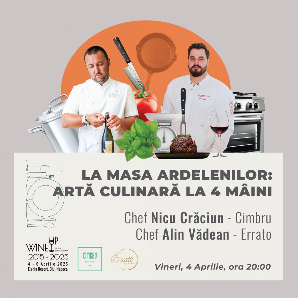 Descoperă aromele autentice ale Transilvaniei reinterpretate de doi maeștri ai bucătăriei, într-o cină exclusivistă la patru mâini. Inspirată din rețetele tradiționale ale sașilor, maghiarilor și românilor din această regiune, meniul serii îmbină tehnici moderne cu ingrediente locale, oferindu-ți o experiență gastronomică de neuitat.